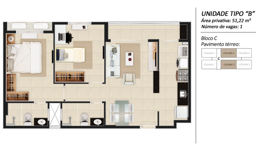 Opções de apartamento: Padrão, com jardim e cobertura duplex